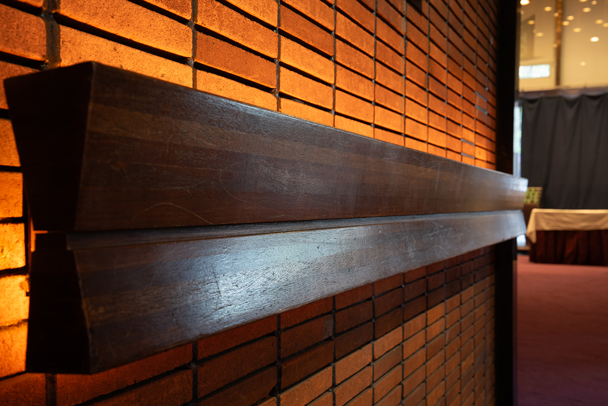 - ロビー手摺りの木
