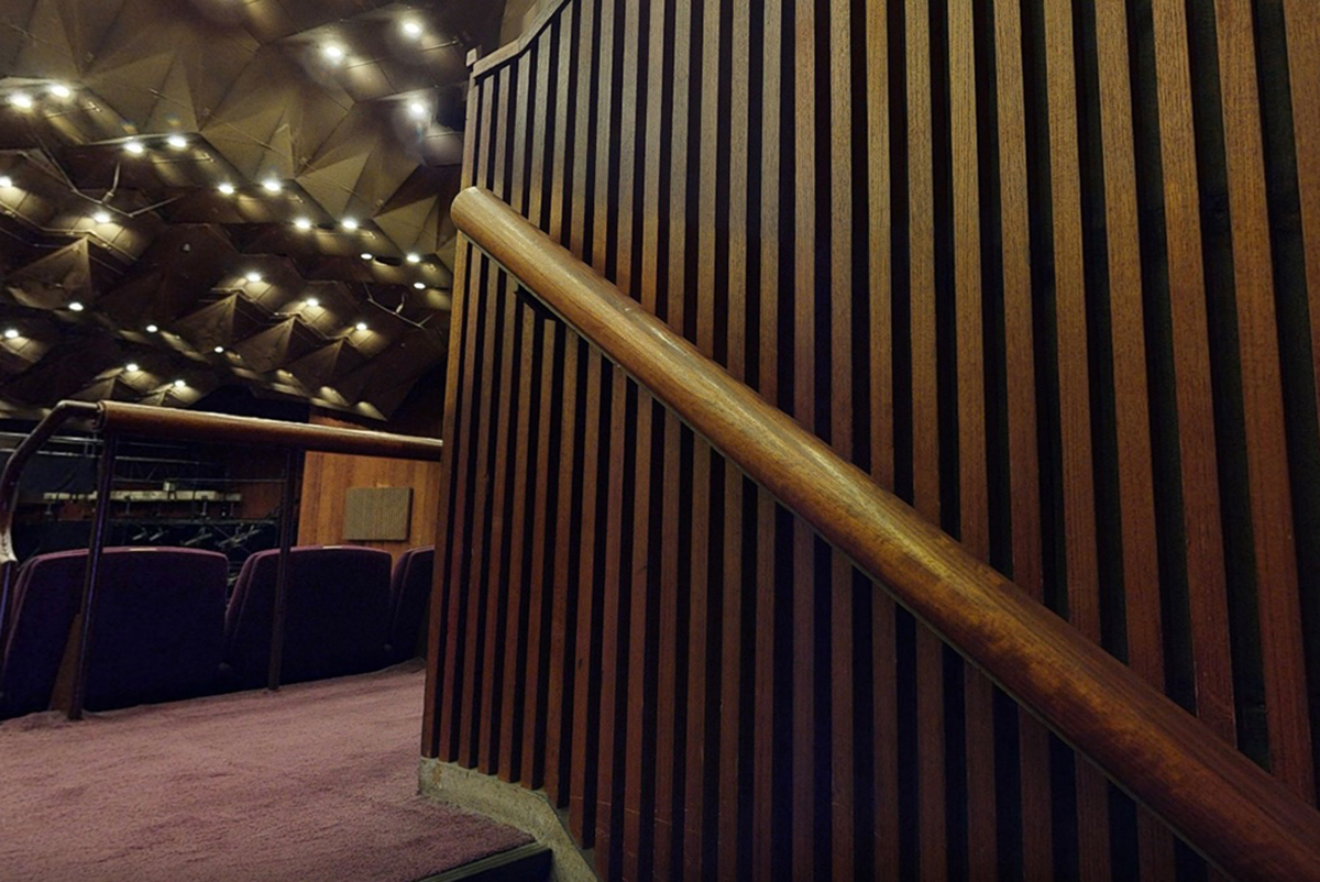 - 1・2階の上手・下手ロビーを照らしていた筒型の照明は、3種類のアッパーライトに。