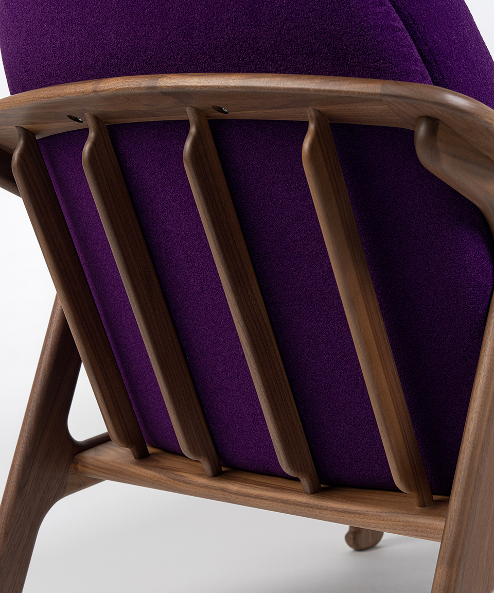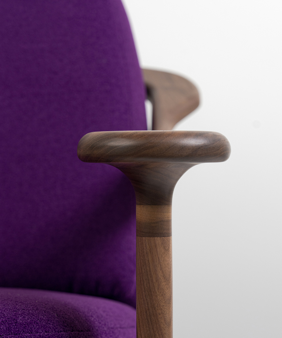 帝国劇場の客席で使用されていたモケット生地を新たに織り上げ、 劇場の座り心地を、よりラグジュアリーに昇華した一脚が誕生しました。