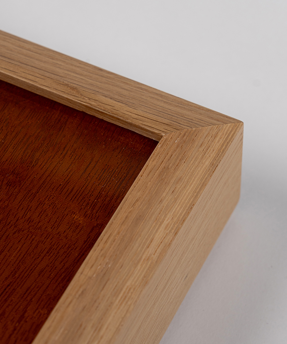本商品は階段外側に使用されていたマホガニーの木を挟んだアクリル材を使用。