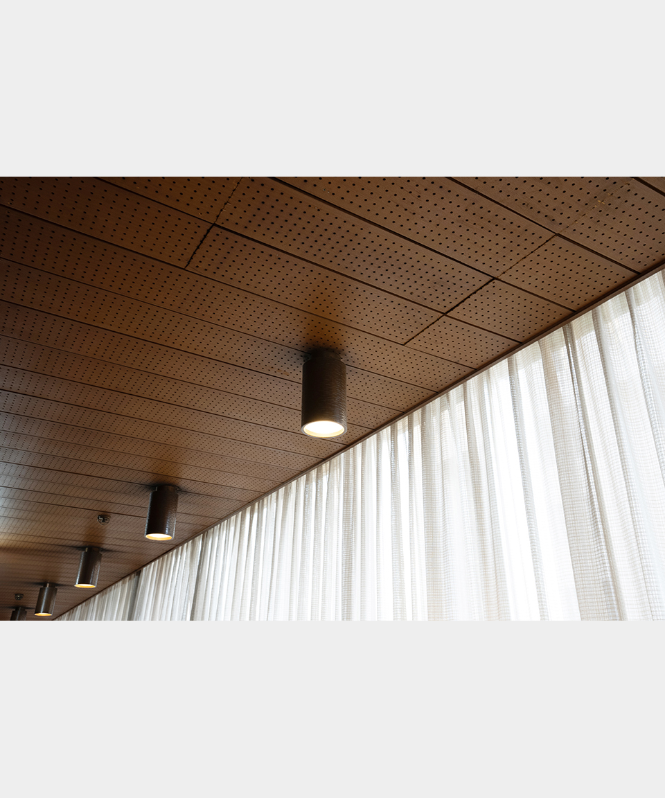 帝劇1・2階ロビー上手下手の通路で使用されていた筒型の照明が、アッパーライトとして生まれ変わりました。
