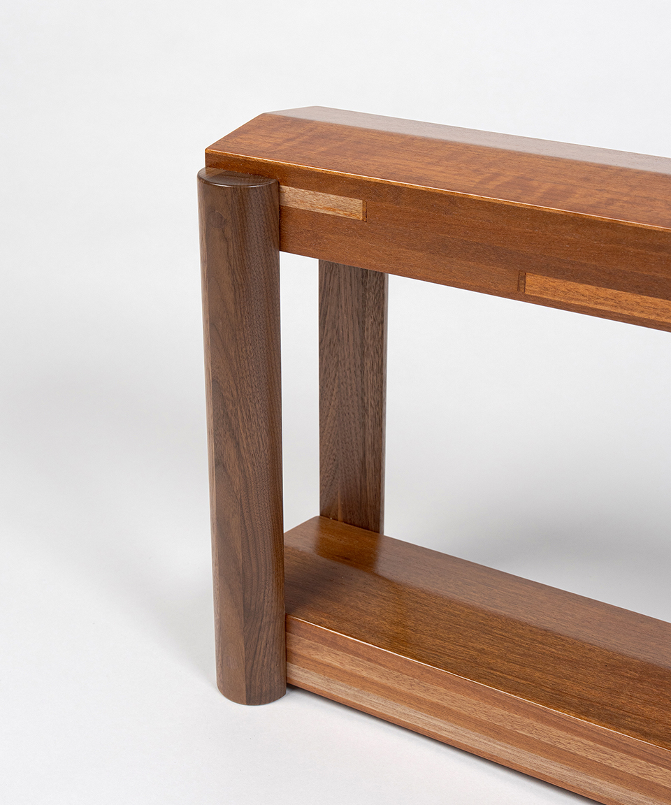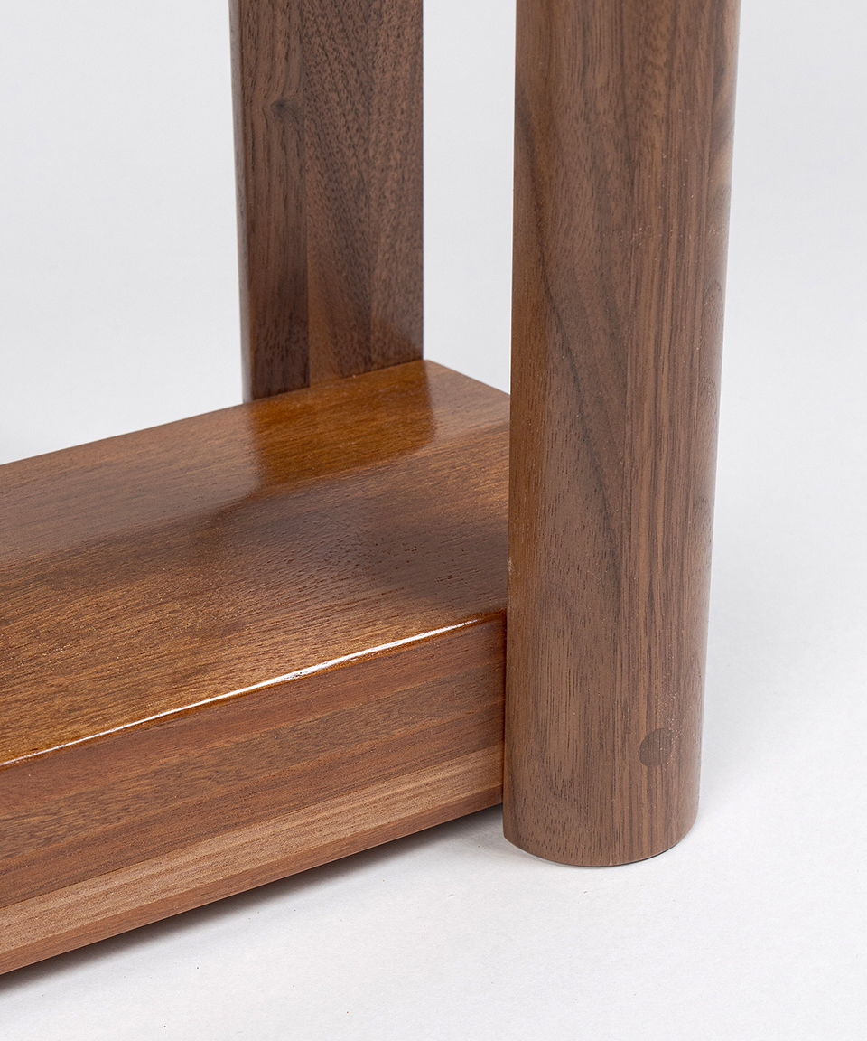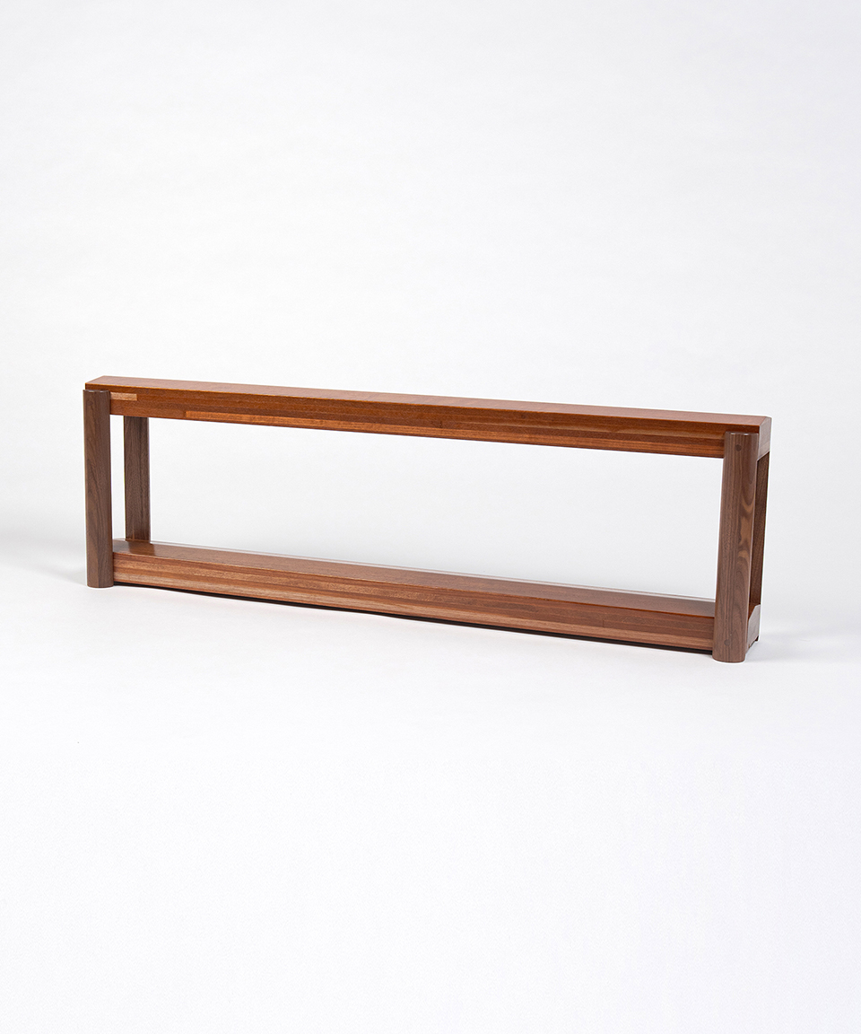 約59年の歴史の中で、数多くのお客様の昇降を支えた木の手摺りから、 日常生活のちょっとしたシーンで使用可能なスツールベンチが誕生いたしました。上下2本に配置した手摺りの木を、カリモク家具の木材で支えリプロダクトする、 まさに「帝劇 Legcy Collection」プロジェクトを体現する一脚です。
