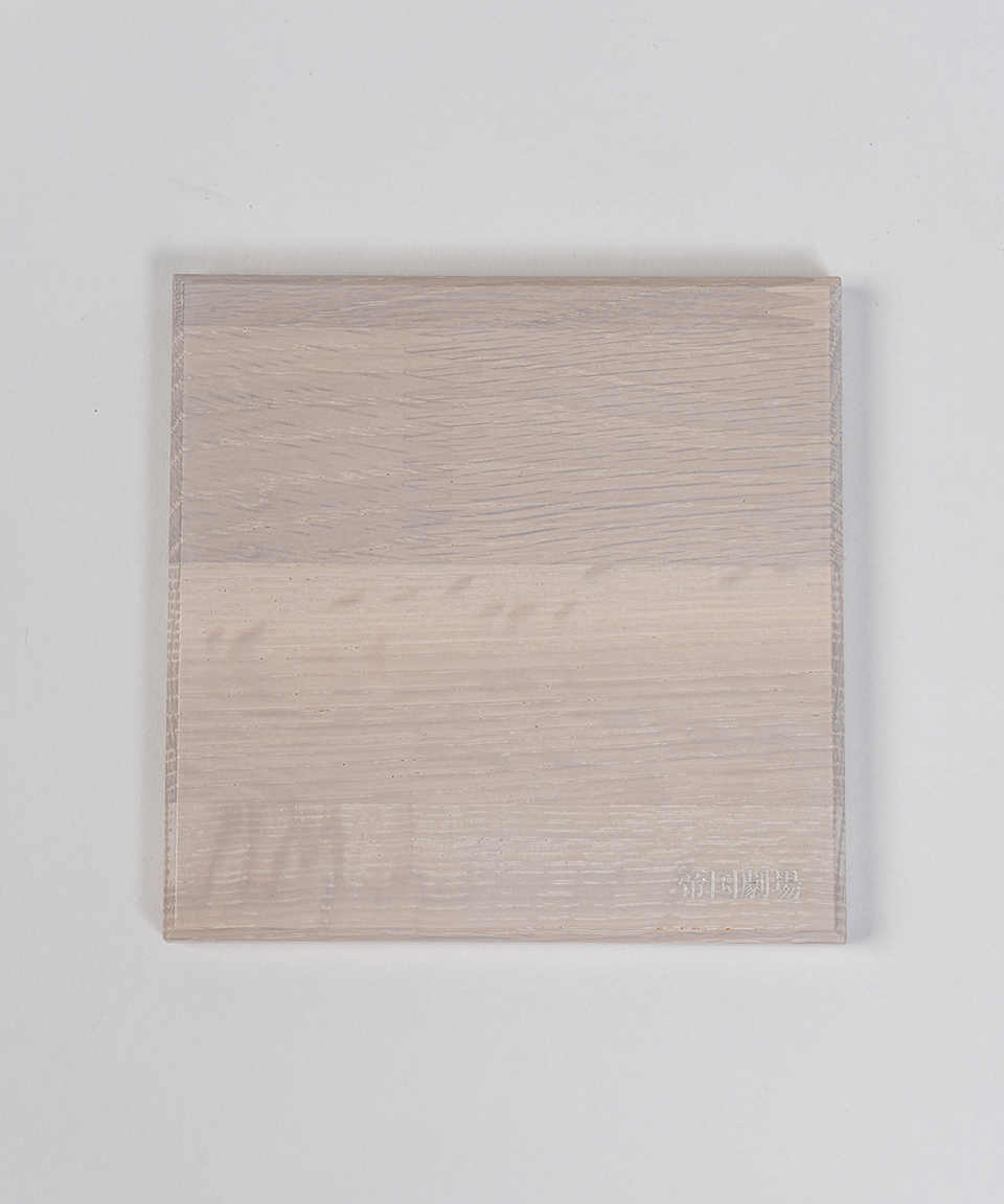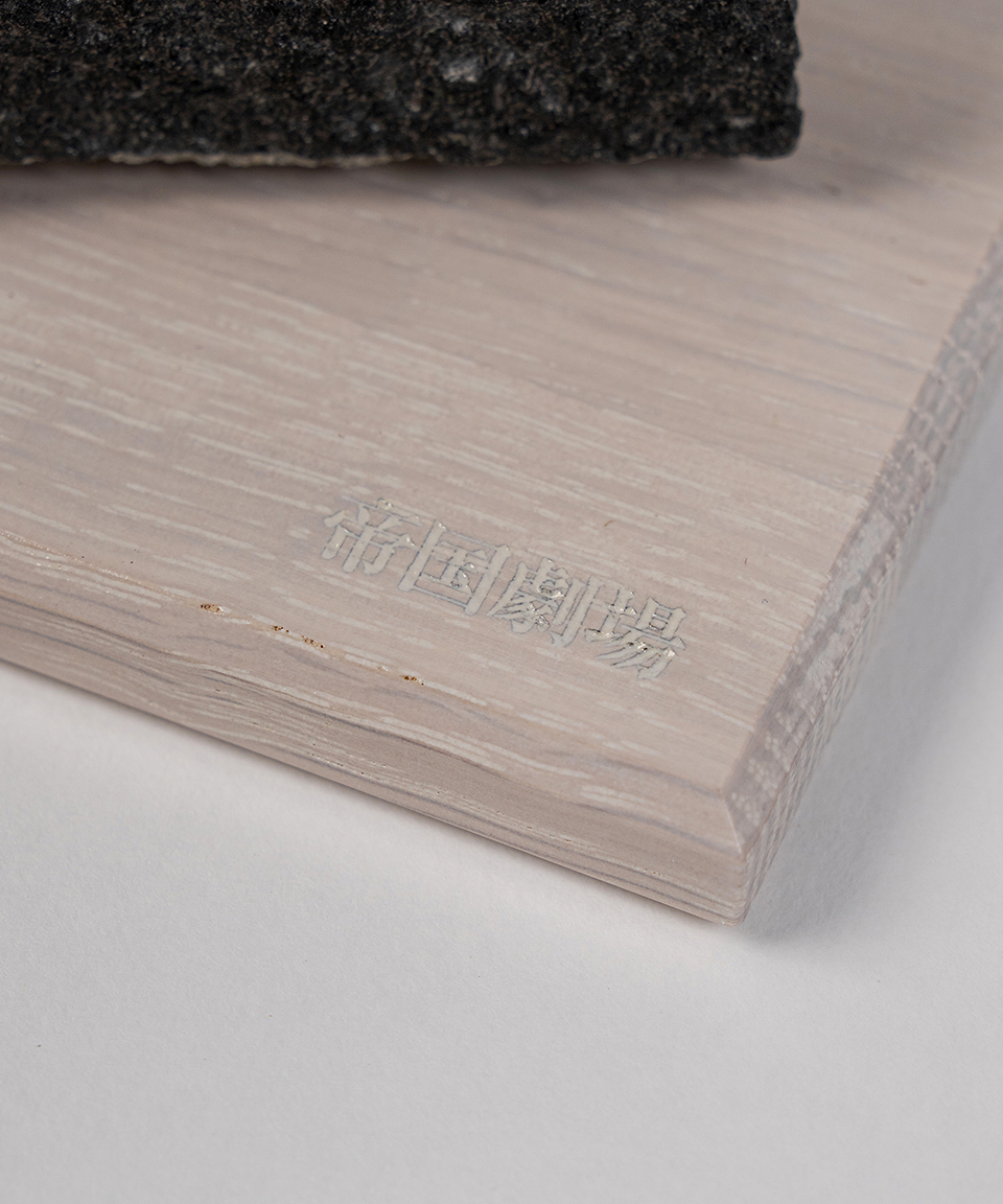 「帝国劇場」のレーザー刻印入りの土台は、カリモク家具の木材で製造。