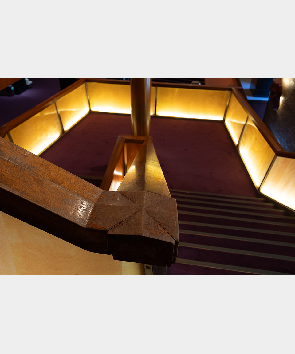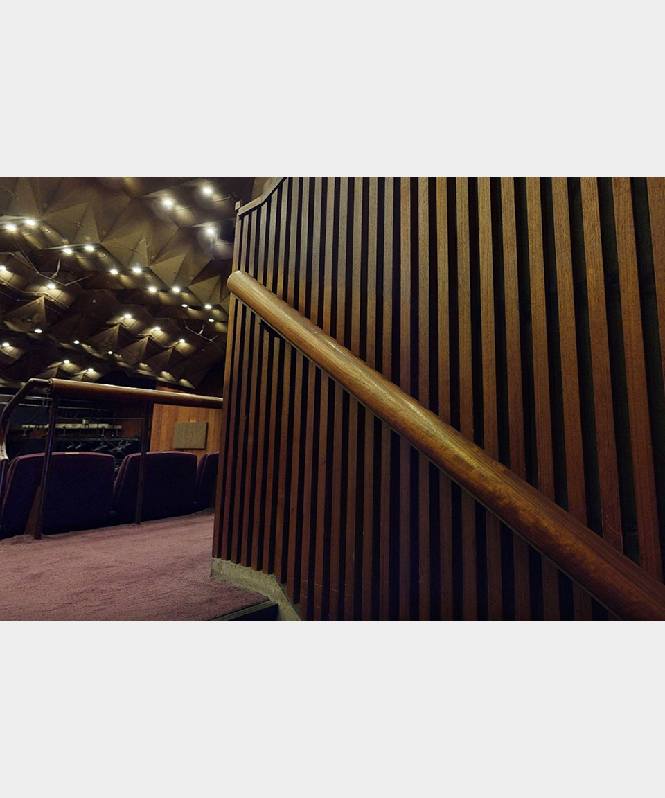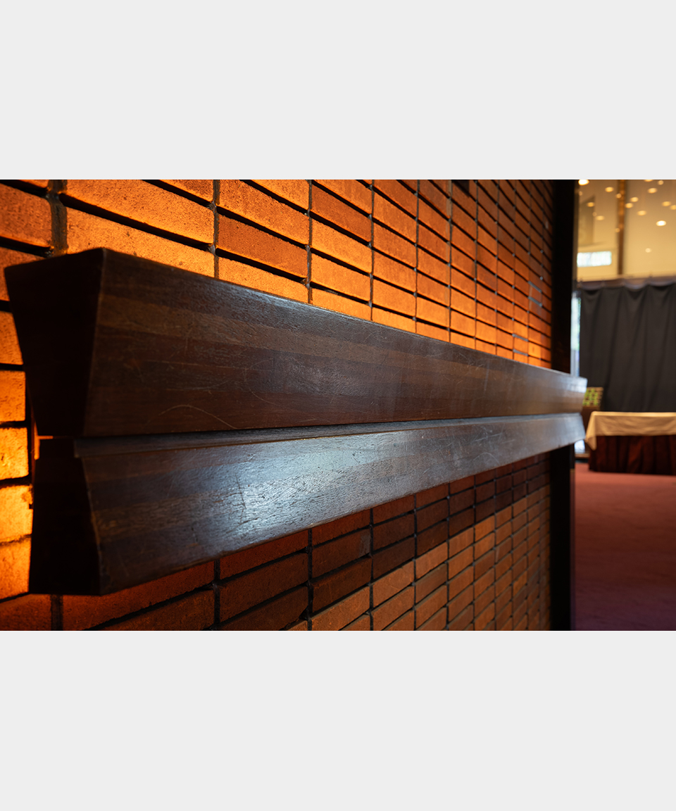 劇場内ロビーの手摺りに使用されていた木材をアップサイクルしたボールペン。カリモク家具の確かな木工技術によって特別な1本に仕上がりました。