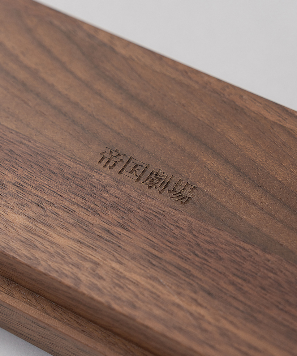 かつて無数の観客を迎えた客席で使用されていたものと同じモケット生地が、日常の小物や文具をやさしく受け止めます。カリモク家具の確かな木工技術が生み出す、直線的なラインを取り入れた美しいフォルムは、帝国劇場の積み重ねてきた歴史と重厚さを表現しています。